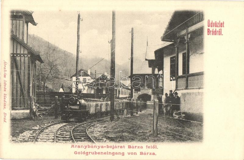 Brád, Aranybánya-bejárat Bárza (Gurabárza) felől, iparvasút, bányászok... https://www.darabanth.com/hu/312-Gyorsarveres/312.0/Kepeslapok/Erdely~500007/Brad-Aranybanya-bejarat-Barza-Gurabarza-felol-iparvasut-banyaszok-Abraham-Istvan-k~II1710582