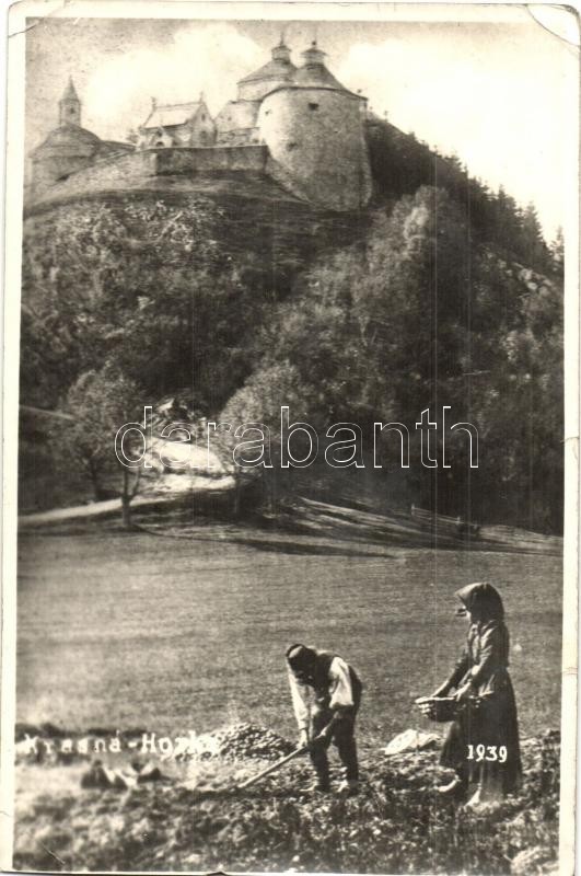 Leírás: Krasznahorkaváralja, Krásnohorské Podhradie; vár / castle + 1938 Rozsnyó visszatért So. Stpl. (kis szakadások / small tears)