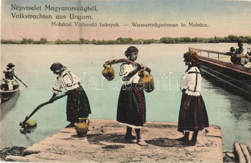 Népviselet Magyarországból. Mohácsi vízhordó leányok / Volkstrachten aus Ungarn. Wasserträgerinnen in Mohács / Hungarian folklore. Water carrier girls in Mohács. L. & P. Nr. 2749. (EK)