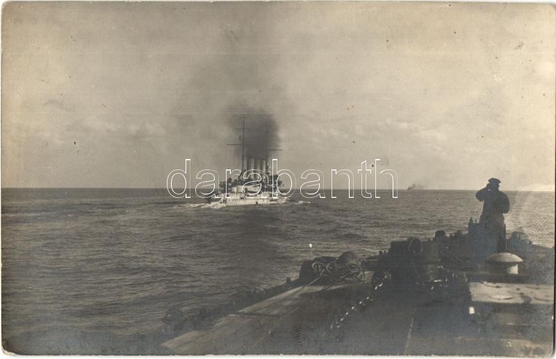1916 SMS Sankt Georg, osztrák-magyar páncélos cirkáló hazafelé Riminiből a vasúti híd szétlövése után / WWI K.u.K. Kriegsmarine, SMS Sankt Georg heading home after bombing the railway bridge in Rimini. photo