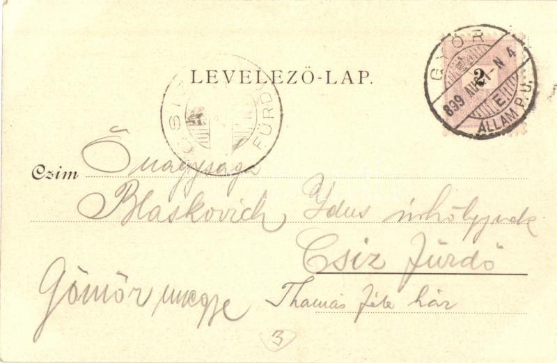 Leírás: 1899 Győr, Városi színház, Sétatéri új híd. Heckenast György kiadása (EK)