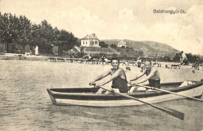Balatongyörök, evezősök és fürdőzők a strandon, háttérben az Eőri vill... https://www.darabanth.com/hu/312-Gyorsarveres/312.0/Kepeslapok/Magyarorszag~500006/Balatongyorok-evezosok-es-furdozok-a-strandon-hatterben-az-Eori-villa-Kalman-kiadas~II1709216