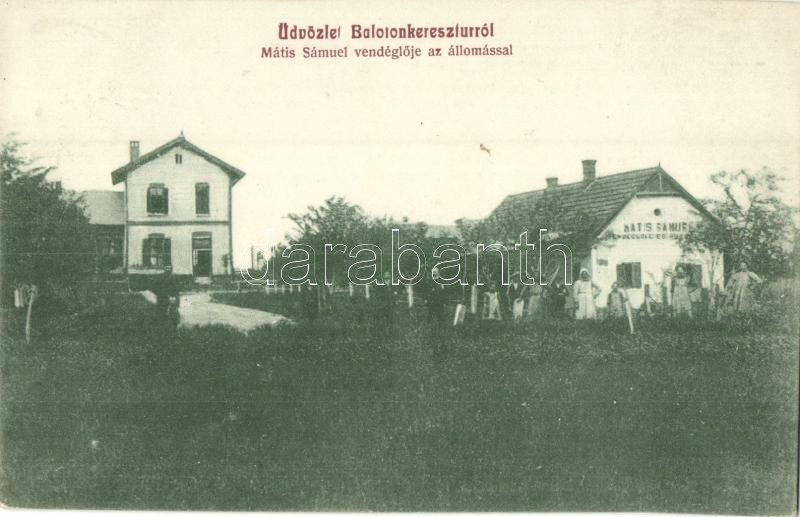 Leírás: Balatonkeresztúr, Mátis Sámuel vendéglője, étterem és húscsarnok, vasútállomás