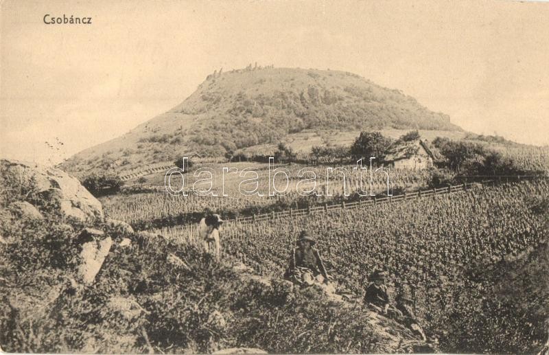 Csobánc, Vár, szőlőültetvény; Lőwy B. kiadása https://www.darabanth.com/hu/312-Gyorsarveres/312.0/Kepeslapok/Magyarorszag~500006/Csobanc-Var-szoloultetveny-Lowy-B-kiadasa~II1709386