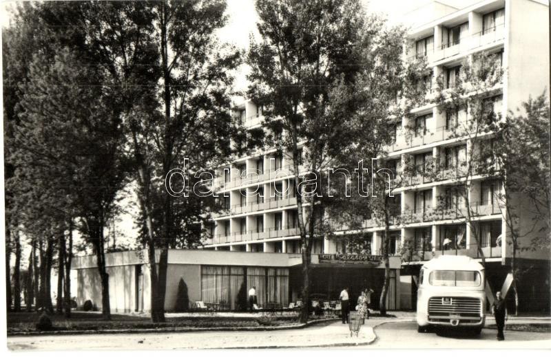 Leírás: Siófok - 7 db modern városképes lap: SZOT Vasas üdülő, Balaton, Hungária, Europa, Napfény szállodák, automobilok, Bányász üdülő, autóbuszok