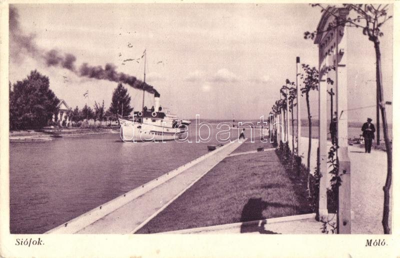 Siófok, Móló, gőzhajó (EB) https://www.darabanth.com/hu/312-Gyorsarveres/312.0/Kepeslapok/Magyarorszag~500006/Siofok-Molo-gozhajo-EB~II1711993