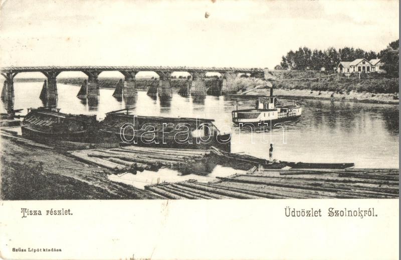 Szolnok, Tisza folyó, gőzhajó, farakodók. Szüsz Lipót kiadása (EK) https://www.darabanth.com/hu/312-Gyorsarveres/312.0/Kepeslapok/Magyarorszag~500006/Szolnok-Tisza-folyo-gozhajo-farakodok-Szusz-Lipot-kiadasa-EK~II1712170