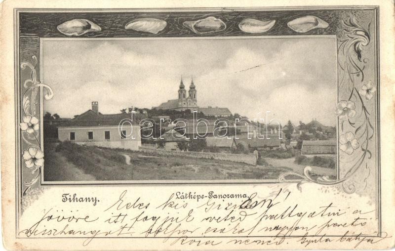 Leírás: Tihany, látkép. Kampmann H. kiadása, floral Art Nouveau (EK)