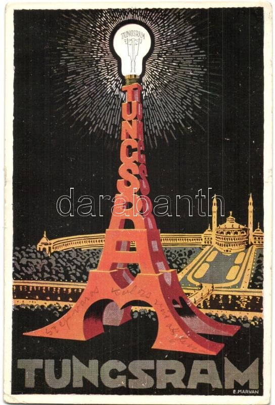 Leírás: Tungsram light bulb art advertisement postcard. Chromo-Zincografia. s: E. Marvan (kis szakadás / small tear)