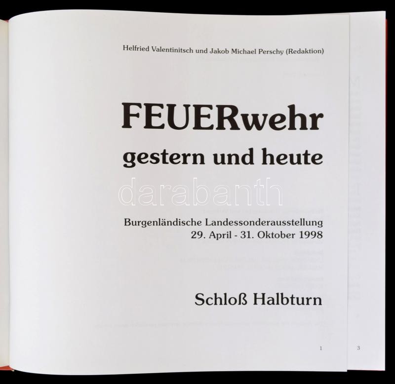 Feuerwehr gestern und heute. (Tűzoltók tegnap és ma.) Szerk.: Helfried Valentinitsch-Jacob Michael Perschy. Bugenländische Landessonderausstellung 29. April-31.Oktober 1998. Eisenstadt, 1998, Amt der Burgenländischen Landesregierung. Német nyelven. Kiadói kartonált papírkötés, német nyelven. /Paperbinding, in German language.