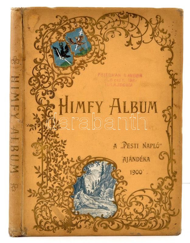 Himfy-Album. A Pesti Napló 1900. évi karácsonyi ajándéka elÅ‘fizetÅ‘inek. Bp., 1900, Pesti Napló, XLVIII+144 p.+ 8 t. Kiadói aranyozott, illusztrált egészvászon kötés, Gottermayer N.-kötés, egészoldalas és szövegközti fekete-fehér képekkel illusztrálva, kissé foltos, kissé kopottas borÃtóval, kissé sérült gerinccel, az egyik tábla sarka sérült, a hátsó szennylap egyik sarka hiányos.