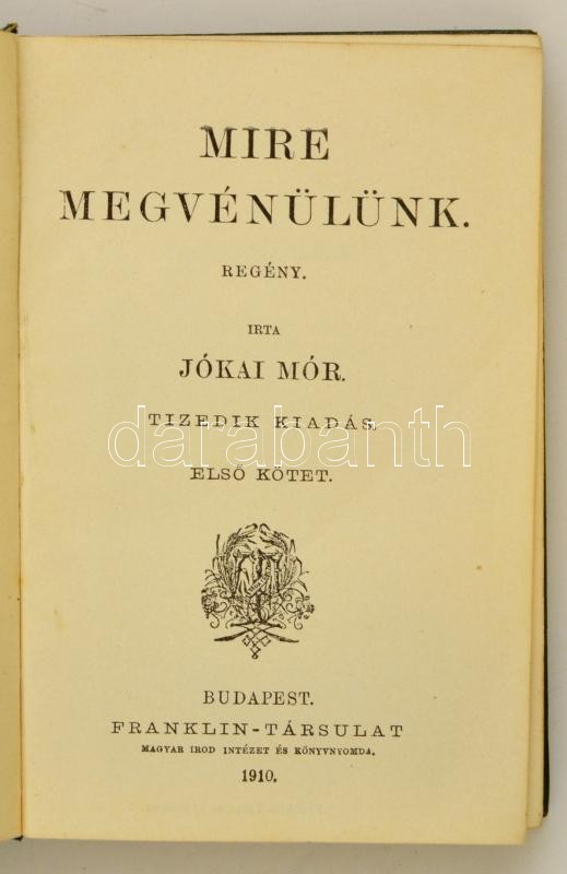 Jókai Mór: Mire megvénülünk. I-II. kötet. Regény. Bp., 1910, Franklin-... https://www.darabanth.com/hu/312-Gyorsarveres/312.0/Konyvek/Konyvek-Egyeb-ritkasagok~300016/Jokai-Mor-Mire-megvenulunk-I-II-kotet-Regeny-Bp-1910-Franklin-Tarsulat-Tizedik-kiad~II1709300