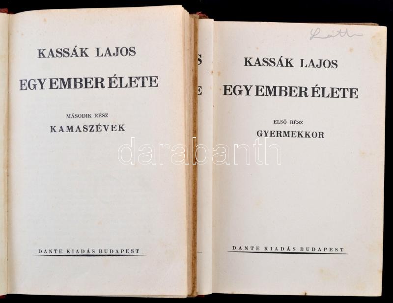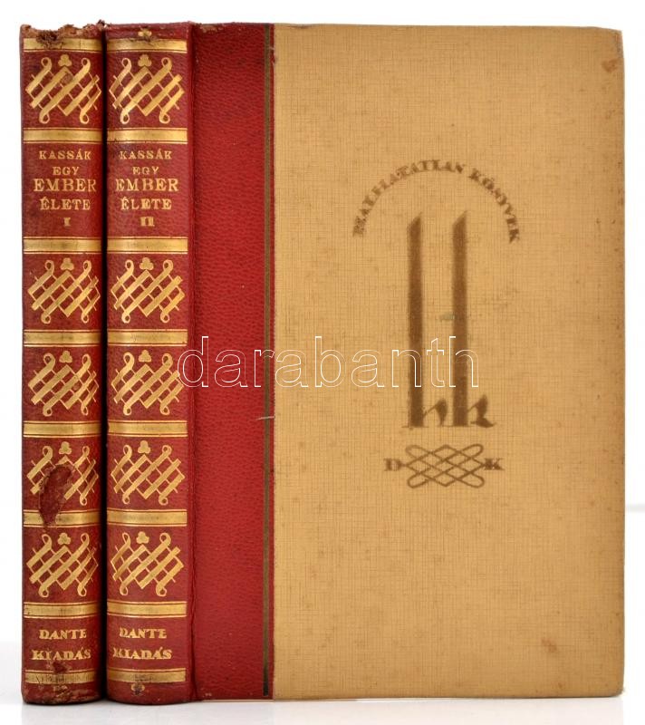 Kassák Lajos: Egy ember élete I-II. kötet. Halhatatlan könyvek. Bp., é.n., Dante. Kiadói félbőr-kötés, a borító kissé foltos, az első kötet kötése megerősített, az első kötet gerince sérült.