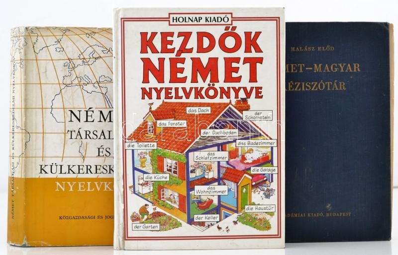 Vegyes német nyelvkönyvek és szótár tétel, 3 db: