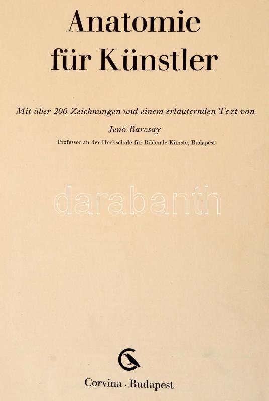 Barcsay Jenő: Anatomie für Künstler. Bp., 1967, Corvina. Kiadói egészvászon-kötés, kopottas borítóval, kissé viseltes gerinccel, foltos lapokkal, német nyelven./ Linen-binding, with worn cover, and little bit damaged spine, and spotty pages, in German language.