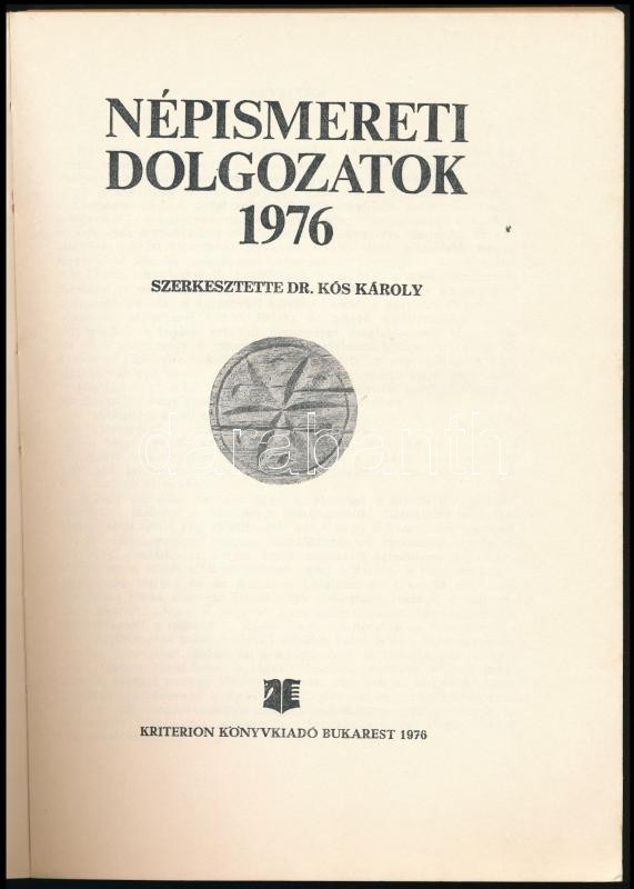 Népismereti dolgozatok 1976. Szerkesztette: Dr. Kós Károly, Dr. Faragó... https://www.darabanth.com/hu/312-Gyorsarveres/312.0/Konyvek/Konyvek-Tarsadalomtudomany~300010/Nepismereti-dolgozatok-1976-Szerkesztette-Dr-Kos-Karoly-Dr-Farago-Jozsef-Bukarest-1976-~II1691670