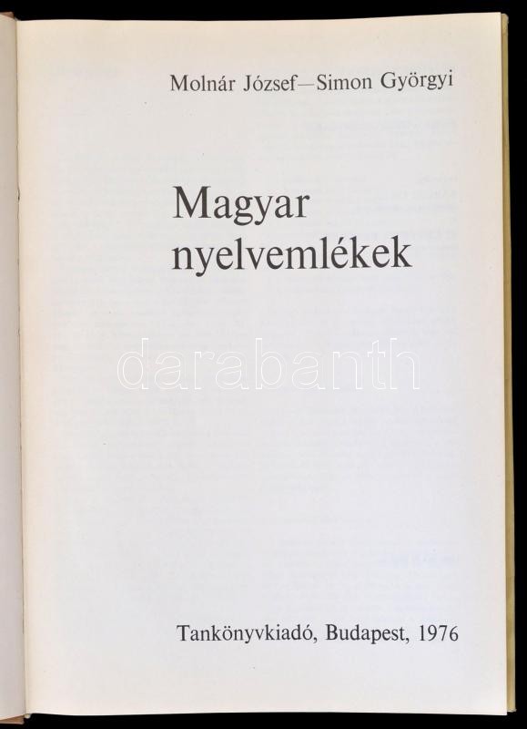 Molnár József-Simon Györgyi: Magyar nyelvemlékek Bp., 1976. Tankönyvki... https://www.darabanth.com/hu/312-Gyorsarveres/312.0/Konyvek/Konyvek-Tortenelem~300004/Molnar-Jozsef-Simon-Gyorgyi-Magyar-nyelvemlekek-Bp-1976-Tankonyvkiado~II1694035