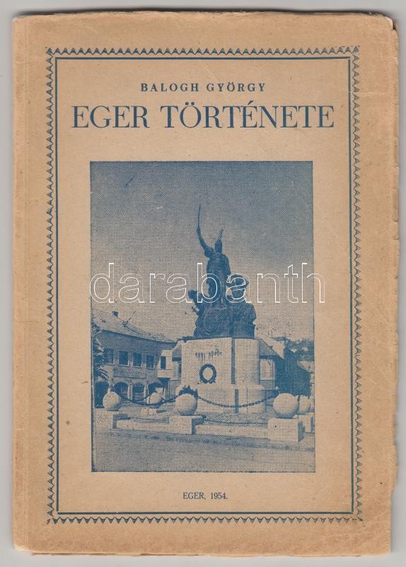 Balogh György: Eger története. Eger, 1954, Eger Városi Tanács Végrehajtó Bizottsága. Fekete-fehér fotókkal illusztrálva. Kiadói papírkötés, kissé szakadozott borítószélekkel.