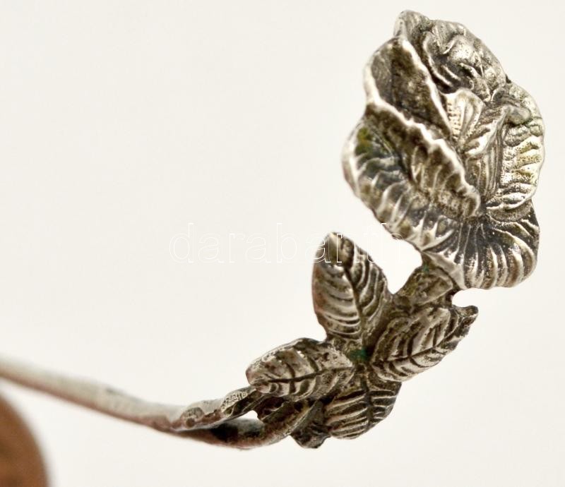 Leírás: Ezüst cukormerító kanál rózsa díszítéssel. Jelzett / Silver sugar spoon 8,3 g