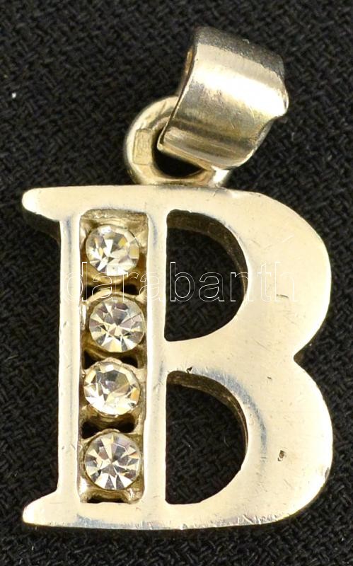 Leírás: Ezüst(Ag) "B" függő, apró szintetikus kövekkel, jelzett, 1,3x2,3 cm, beruttó: 1,4 g