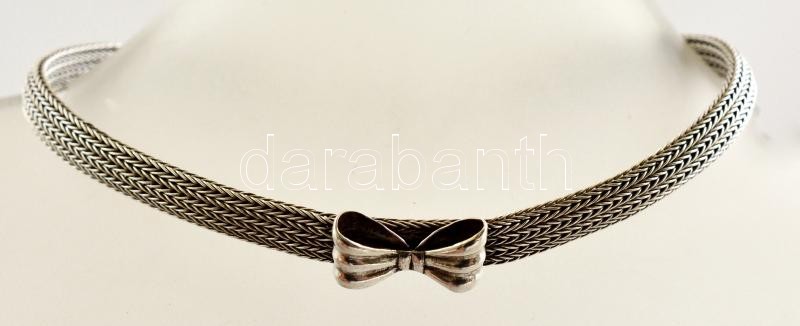Leírás: Ezüst(Ag) széles, szőtt karkötő masnival, jelzett, h: 19 cm, nettó: 6,9 g