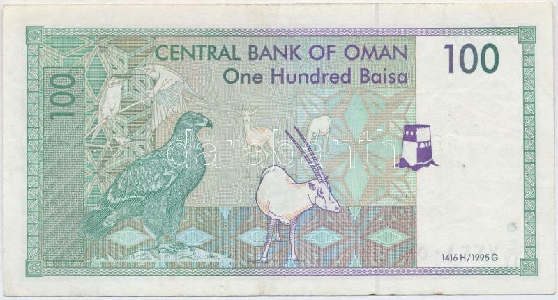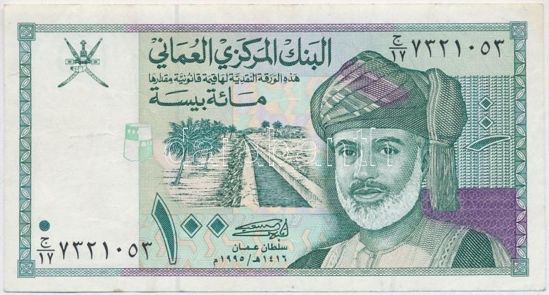 Krause 31 https://www.darabanth.com/hu/312-Gyorsarveres/312.0/Numizmatika/Kulfoldi-bankjegyek~400012/Oman-1995-100B-TIII--Oman-1995-100-Baisa-CF--Krause-31~II1706425