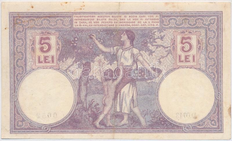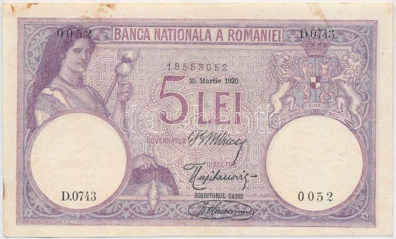 Romania 1920. 5 Lei C:F https://www.darabanth.com/hu/312-Gyorsarveres/312.0/Numizmatika/Kulfoldi-bankjegyek~400012/Romania-1920-5L-TIII--Romania-1920-5-Lei-CF~II1709338