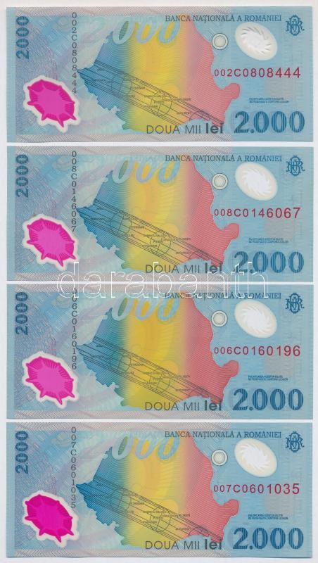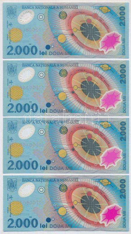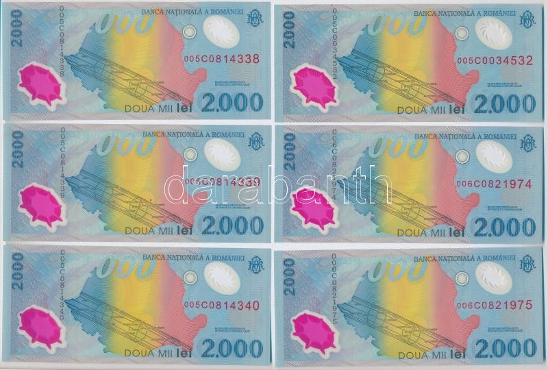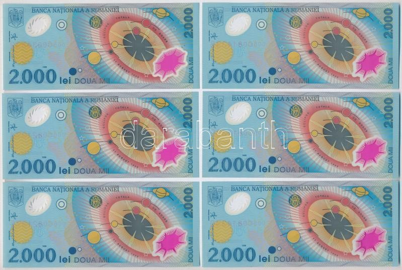 Romania 1999. 2000 Lei "Solar Eclipse" (10x) with 5pcs of sequential serials (3+2) C:UNC