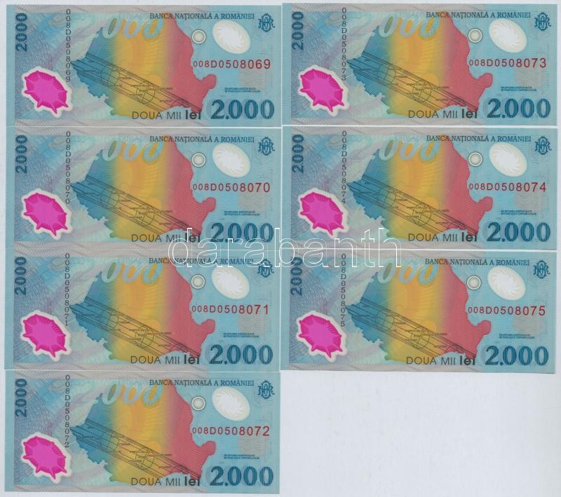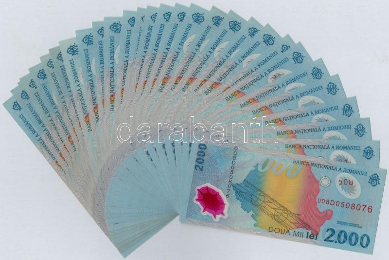Romania 1999. 2000 Lei "Solar Eclipse" (30x) with 21pcs of sequential serials (8+4+3+2+2) C:UNC-F