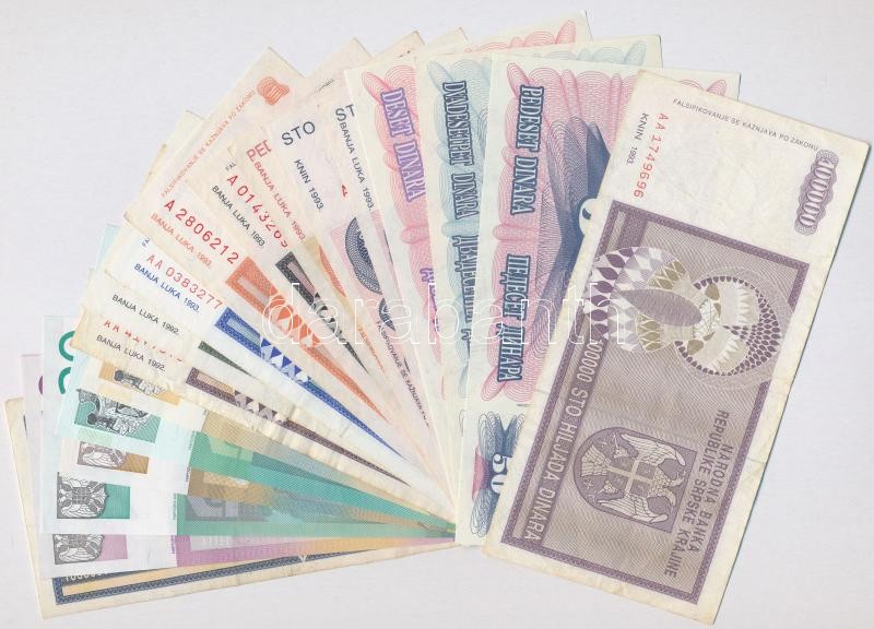 Szerbia / Szerb Krajna / Bosznia-Hercegovina 1992-2011. 18db-os bankjegy tétel, mind klf. T:I-III