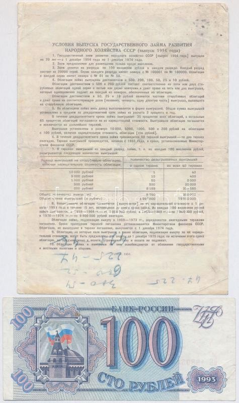 Szovjetunió / Oroszország 1949-1993. 6db-os vegyes bankjegy és sorsjegy tétel T:II-,III