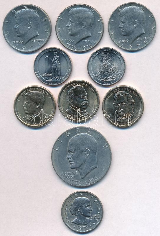 Amerikai Egyesült Államok 1971-2013. 1/2$-1$ (10xklf), közte "Nemzeti Parkok" és "Elnökök" sorozat néhány darabja T:1-2-