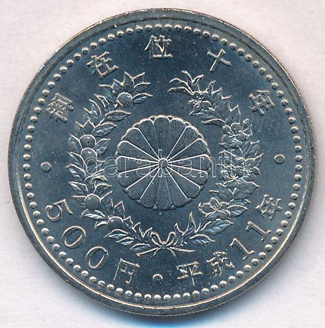 Leírás: Japán 1999. 500Y Cu-Ni "A trónra lépés tizedik évfordulója" T:BU
