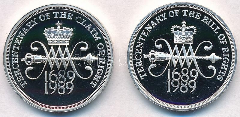 Nagy-Britannia 1989. 2P Ag "A Jogok nyilatkozata 300. évfordulója" + 1989. 2P Ag "A skót alkotmányosság 300. évfordulója" eredeti dísztokban, információs lappal T:PP kis felületi karcok