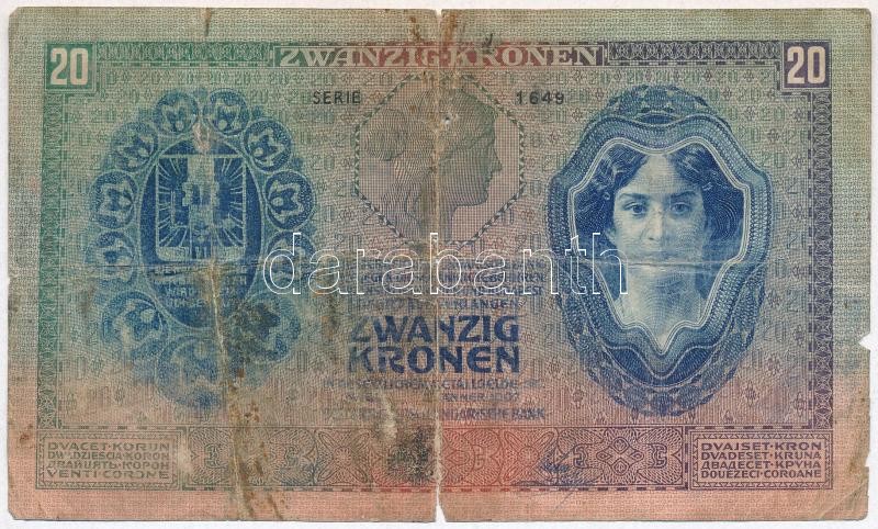 Adamo K16 https://www.darabanth.com/hu/312-Gyorsarveres/312.0/Numizmatika/Magyar-bankjegyek~400007/1907-20K-TIV-ly--Adamo-K16~II1709983