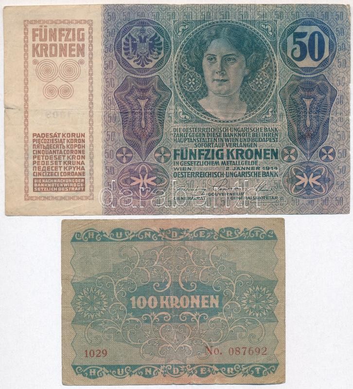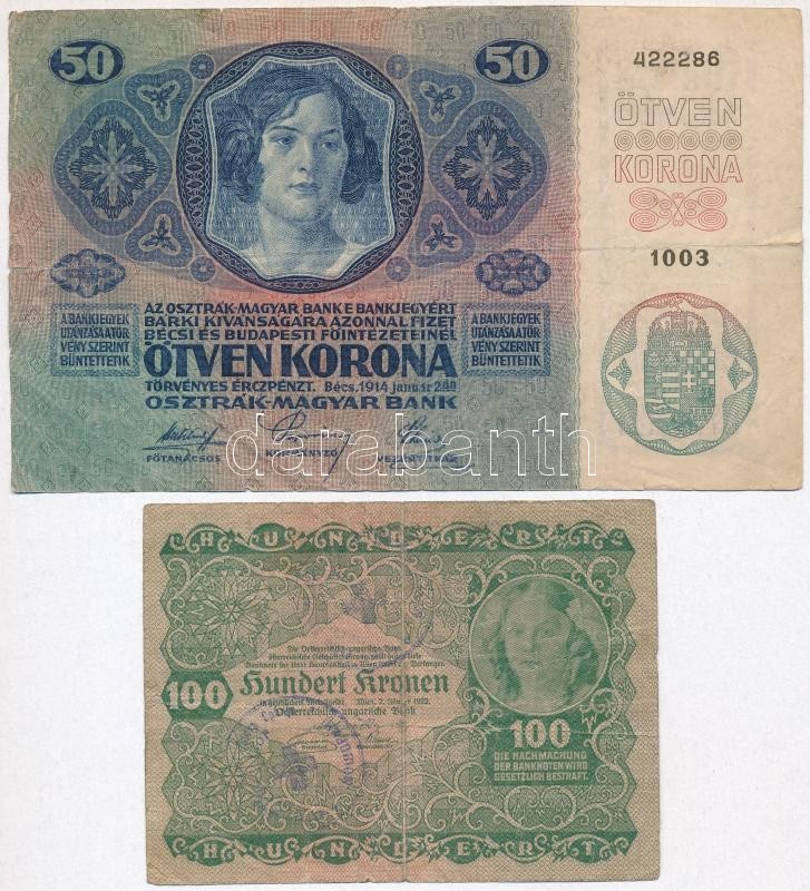 Leírás: 1914. 50K + 1922. 100K kiolvashatatlan, cirill betűs felülbélyegzéssel T:III,III-