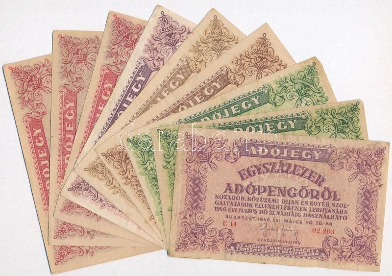Leírás: 1946. 10db-os vegyes adópengő bankjegy tétel, közte több fordított címeres T:III,III-