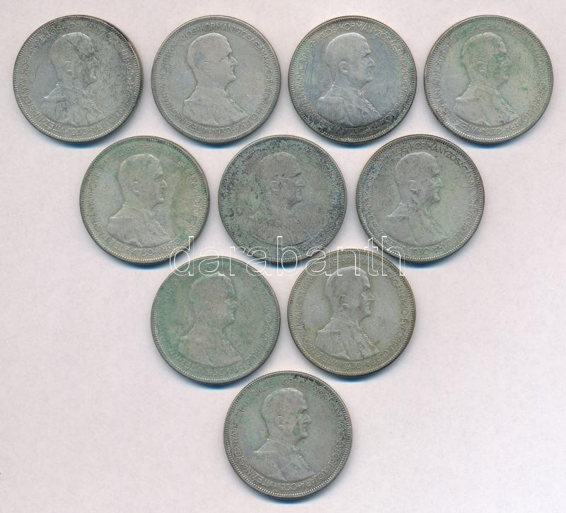 1930. 5P Ag "Horthy jobbra" (10x) T:2-,3 patina, karc