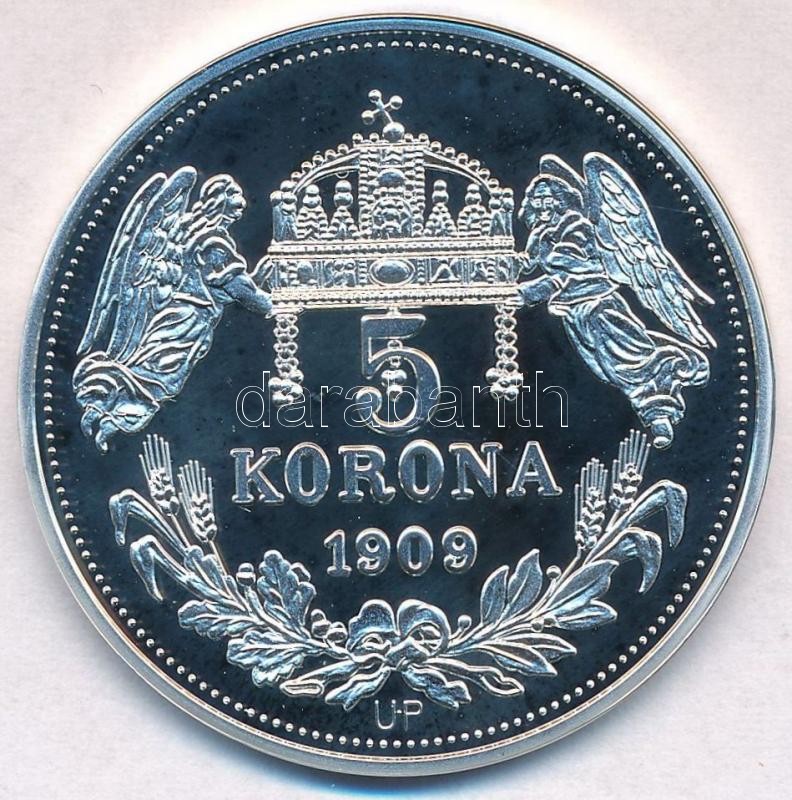 Leírás: DN "Királyi koronák - I. Lipót 5 korona 1909" Ag emlékérem tanúsítvánnyal (20g/0.999/38,61mm) T:PP