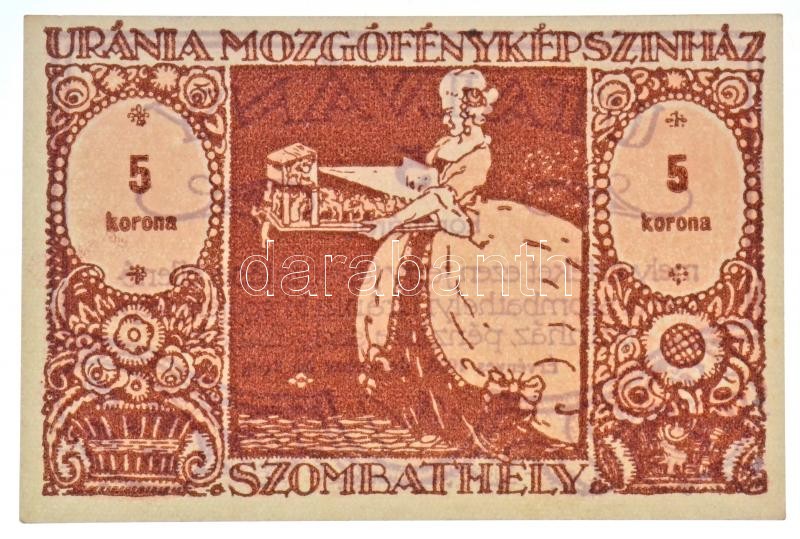 Szombathely 1920. "Uránia Mozgófényképszínház" 5K utalvány T... https://www.darabanth.com/hu/312-Gyorsarveres/312.0/Numizmatika/Papir-es-fem-szuksegpenzek~400006/Szombathely-1920-Urania-Mozgofenykepszinhaz-5K-utalvany-TI-I-Adamo-SZO-76~II1703861