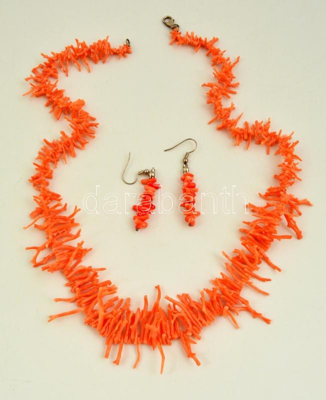 Leírás: Korall nyaklánc, h: 60 cm + korall fülbevaló pár