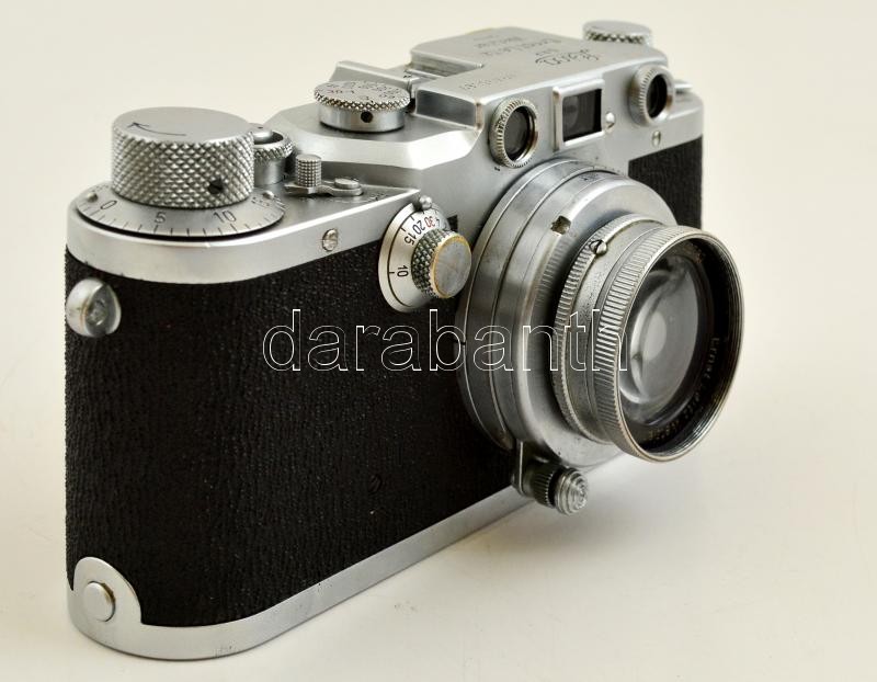 1949 E. Leitz Leica IIIc fényképezőgép, Summar f=5cm 1:2 objektívvel, erdeti bőr tokjában, eredeti használati utasítással és kontroll kártyával, Bertram fénymérővel, nagyon szép állapotban / 1949 Leica IIIc camera, with Summar f=5cm 1:2, in original leather case, original manual and controll card, with light meter, in very good condition