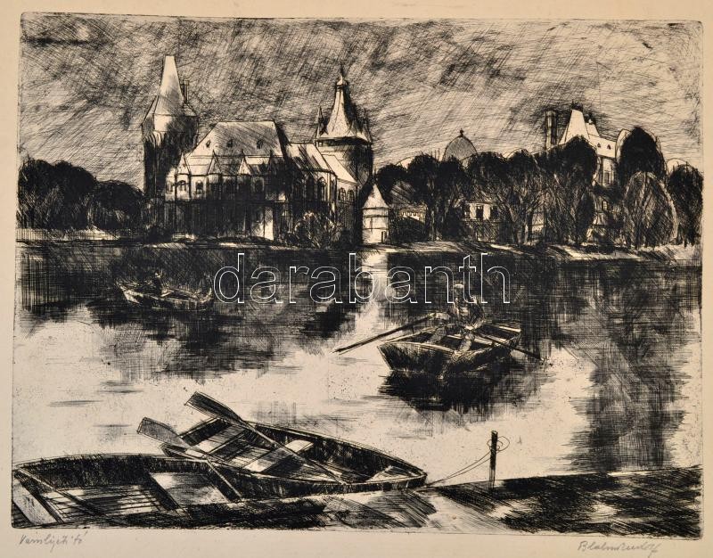 Leírás: Blahos Rudolf (1917-1986): Városligeti tó. Rézkarc, karton, jelzett, 24,5×32 cm