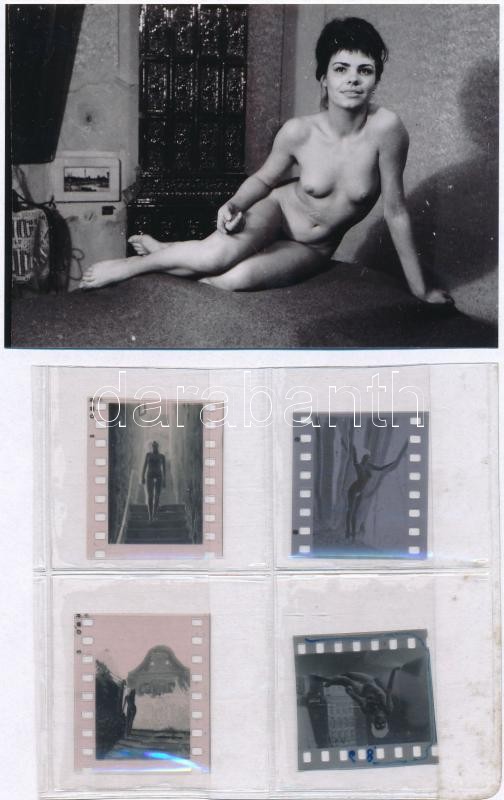 Leírás: cca 1979 Négy vintage negatív és az ezekről készült négy pozitív kép (mai nagyítások), szolidan erotikus felvételek, 24x36 mm és 12,5x9 cm