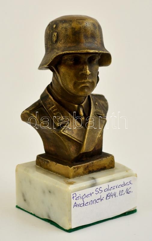 Leírás: Peiper SS alezredes mellszobra, réz, alabástrom talapzaton, m: 13,5 cm
