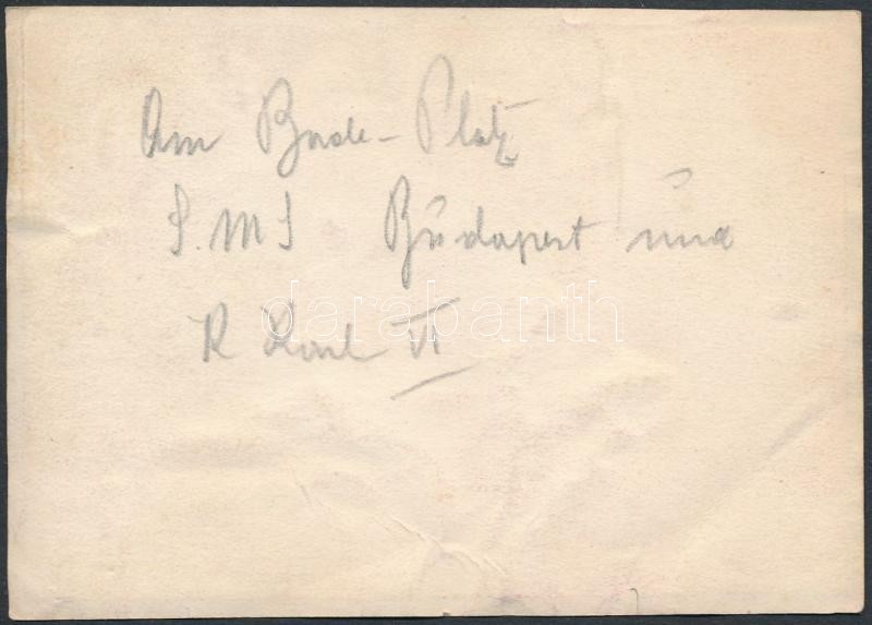 cca 1910 Az SMS Budapest partvédő csatahajó legénysége a szárazföldön, hátoldalán feliratozott fotó, 8x11 cm / Crew of the SMS Budapest Austro-Hungarian battleship, photo, 8x11 cm
