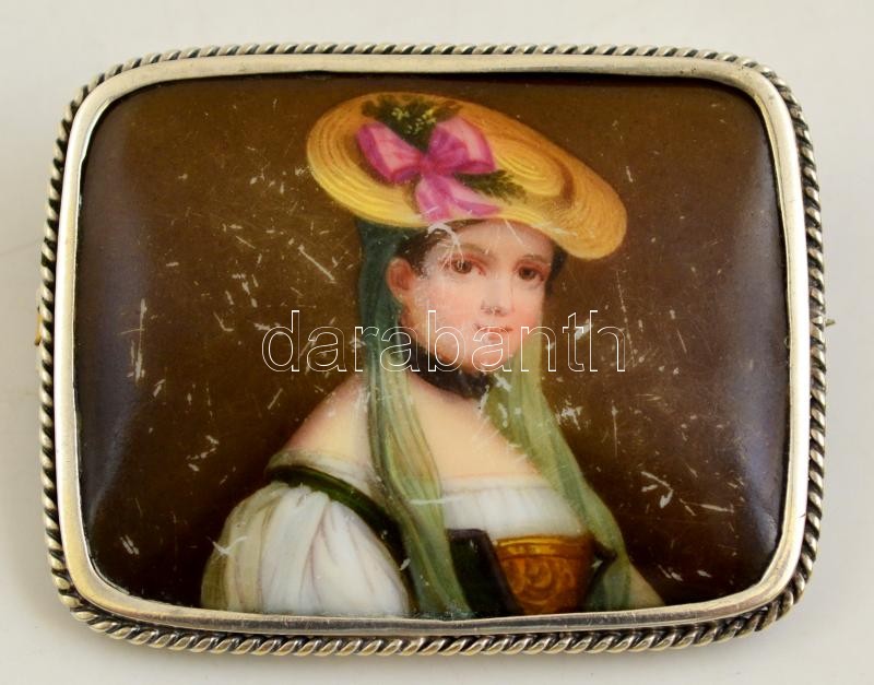 Ezüst (Ag.) bross, kézzel festett porcelán női portréval, karcos, 4,5×... https://www.darabanth.com/hu/313-Gyorsarveres/313.0/Festmeny-mutargy-papirregiseg-egyeb/Mutargyak-antikvitas~4/Ezust-Ag-bross-kezzel-festett-porcelan-noi-portreval-karcos-4-5C3973-5-cm--brutto12-2-g~II1714886
