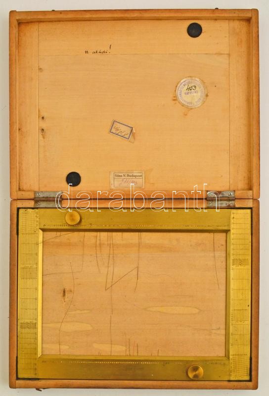 Leírás: Húros planiméter, Süss N. Budapest, szakadt húrokkal, eredeti dobozában (M. Kir. Erdészeti Hivatal Kaposvár), 22×30 cm
