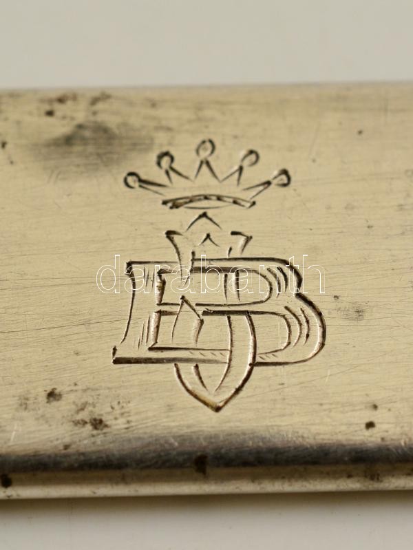 Ezüst (Ag.) monogramos fésűtartó, jelzett, h:9,5 cm, nettó:20 g https://www.darabanth.com/hu/313-Gyorsarveres/313.0/Festmeny-mutargy-papirregiseg-egyeb/Nemesfem-Disztargyak-Orak-es-Ekszerek~31/Ezust-Ag-monogramos-fesutarto-jelzett-h9-5-cm-netto20-g~II1686271