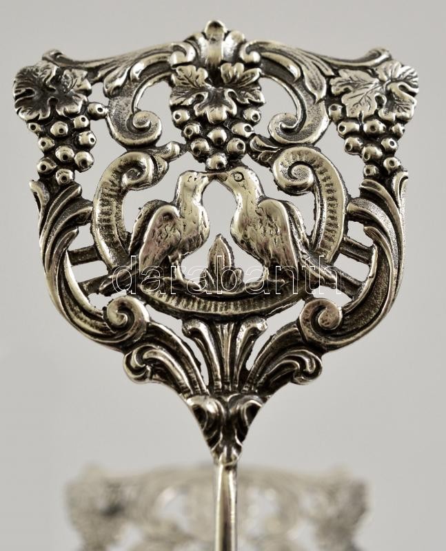 Leírás: Ezüst tortacsipesz galambpár díszítéssel / Silver cake holder with pigeon ornaments 62,2 g